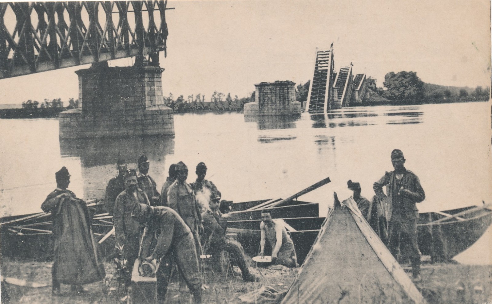 AK Militaria Gesprengte Brücke von Semlin nach Belgrad Ansichtskarte (15976)