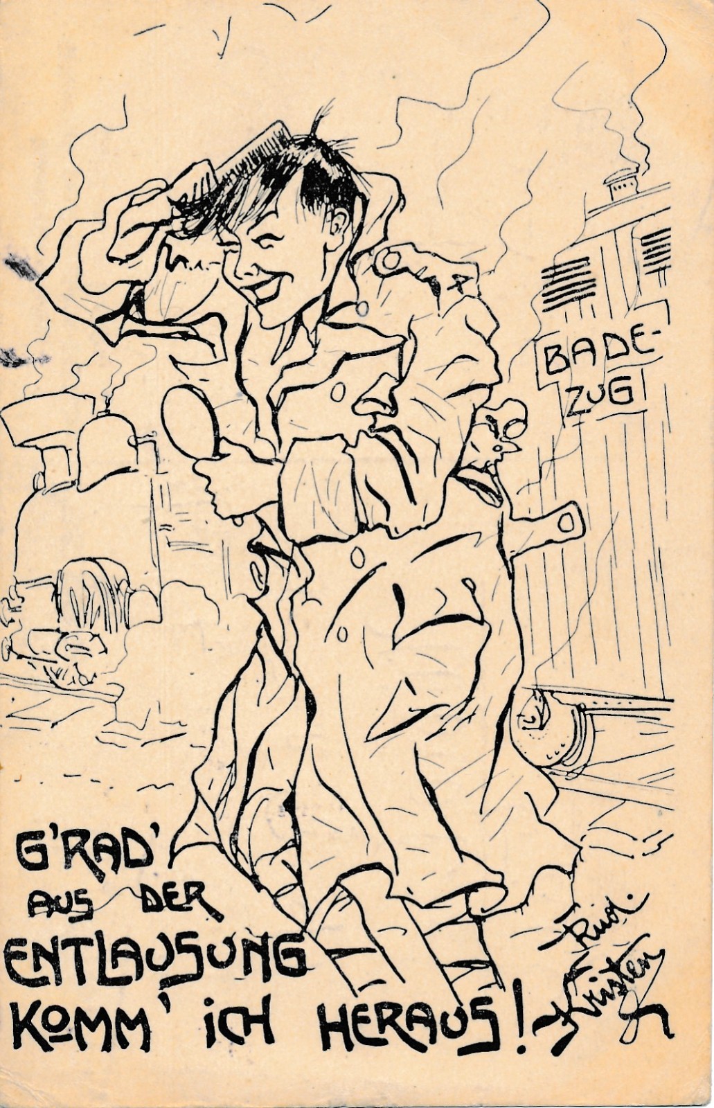 AK Militaria grad aus der entlassung komm ich heraus Ansichtskarte (16962)