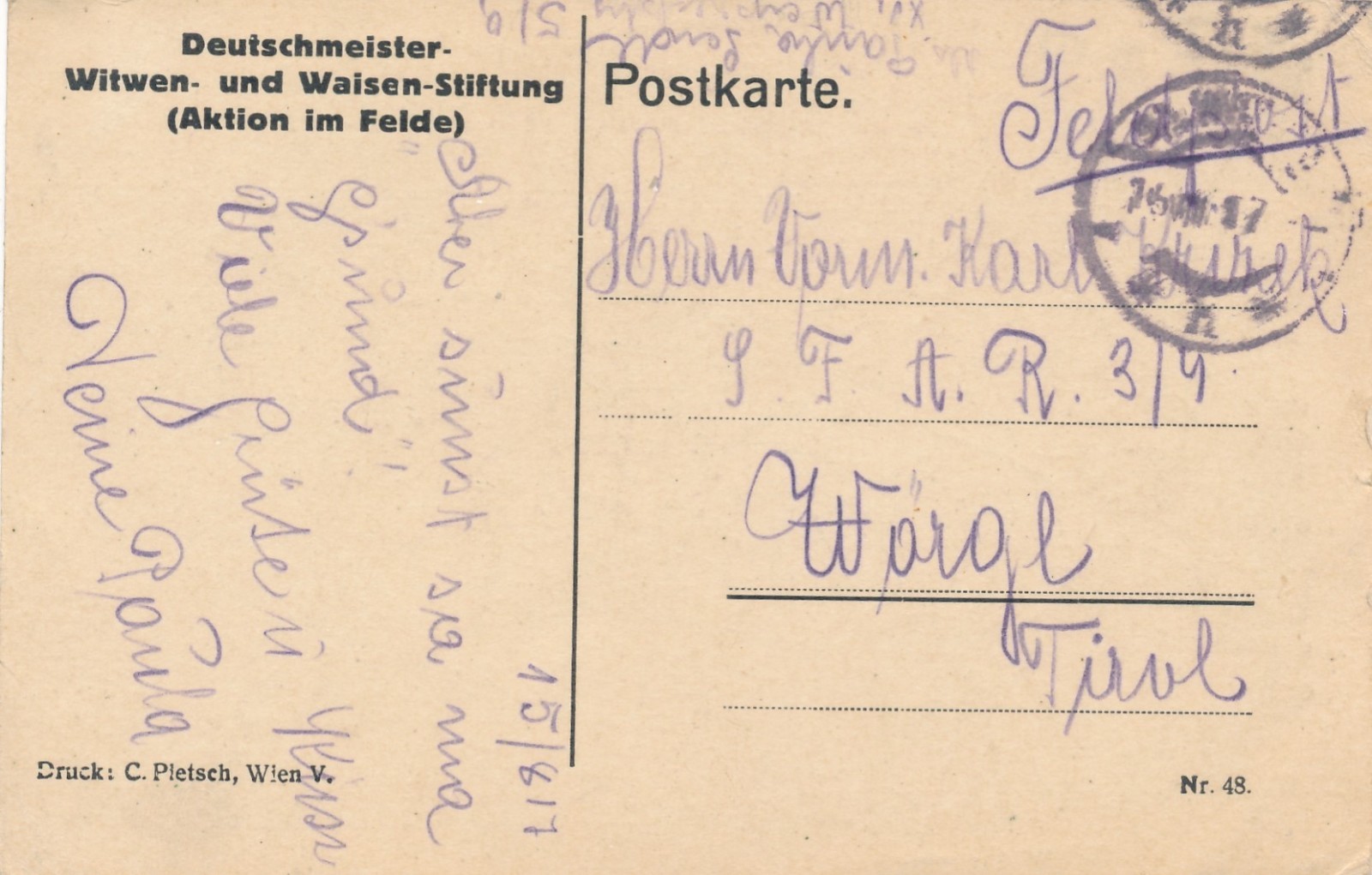 Feldpost - Karte K.u.K. Infanterieregiment Nr.18 19. Kompagnie (16945)