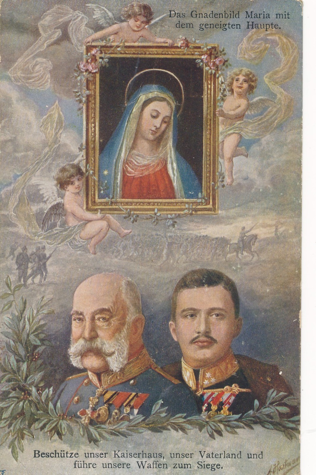 AK Militaria Kaiser Franz Josef und Erzherzog Karl Beschütze unser Kaiser(17004)