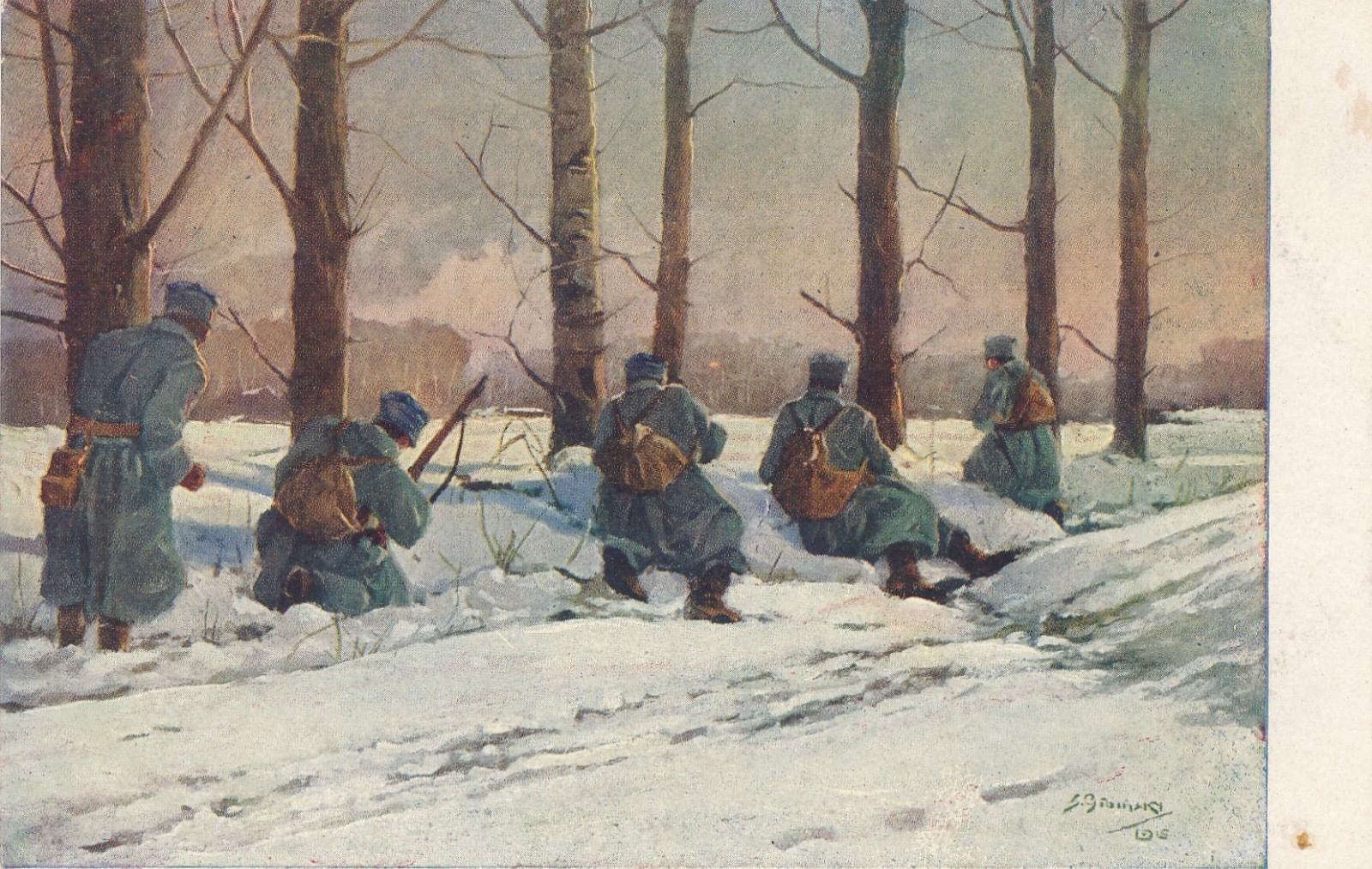 AK Militaria Legionisci w okopach Soldaten im Schnee (17007)