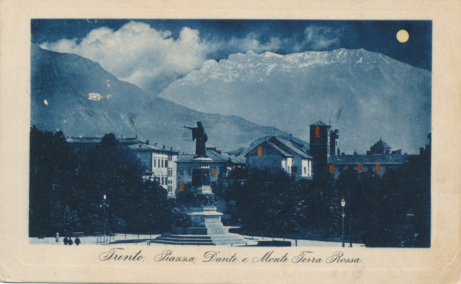 AK, Mondschein, Trento, Piazza, Dante e Monte Terra Rossa, Italien (S1182)