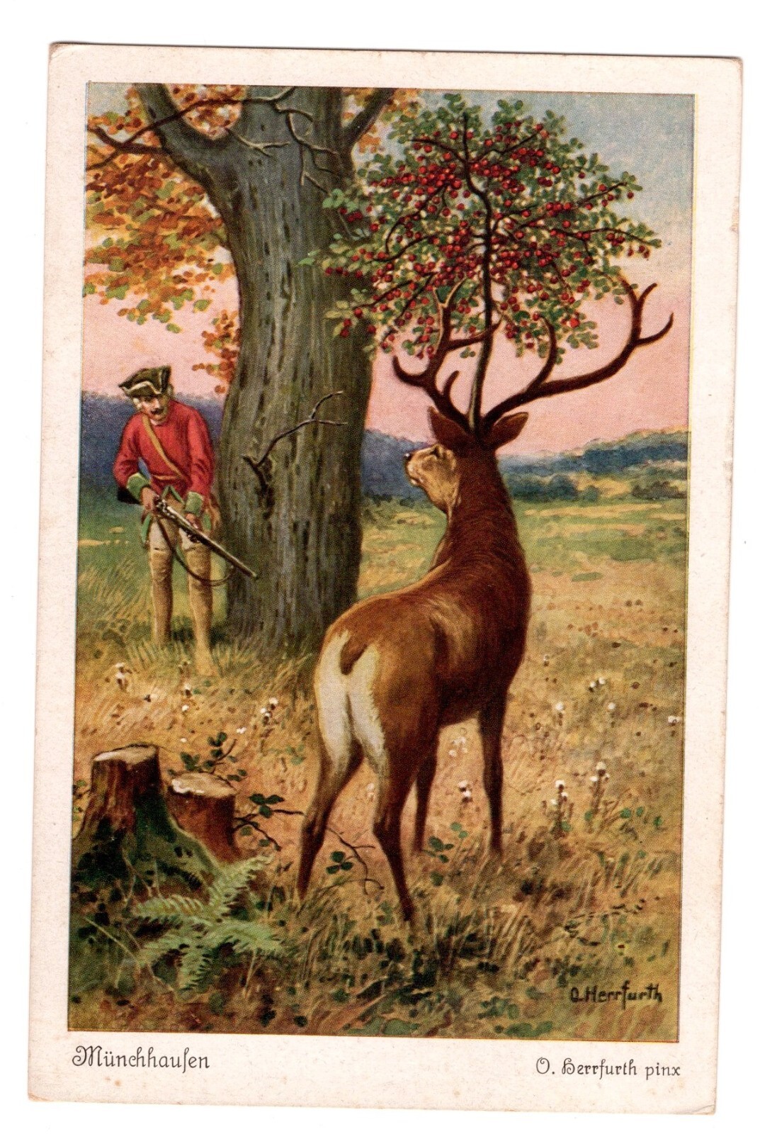 AK, Münchhaufens Abenteuer, Hirsch und Jäger, Ansichtskarte (S5057)