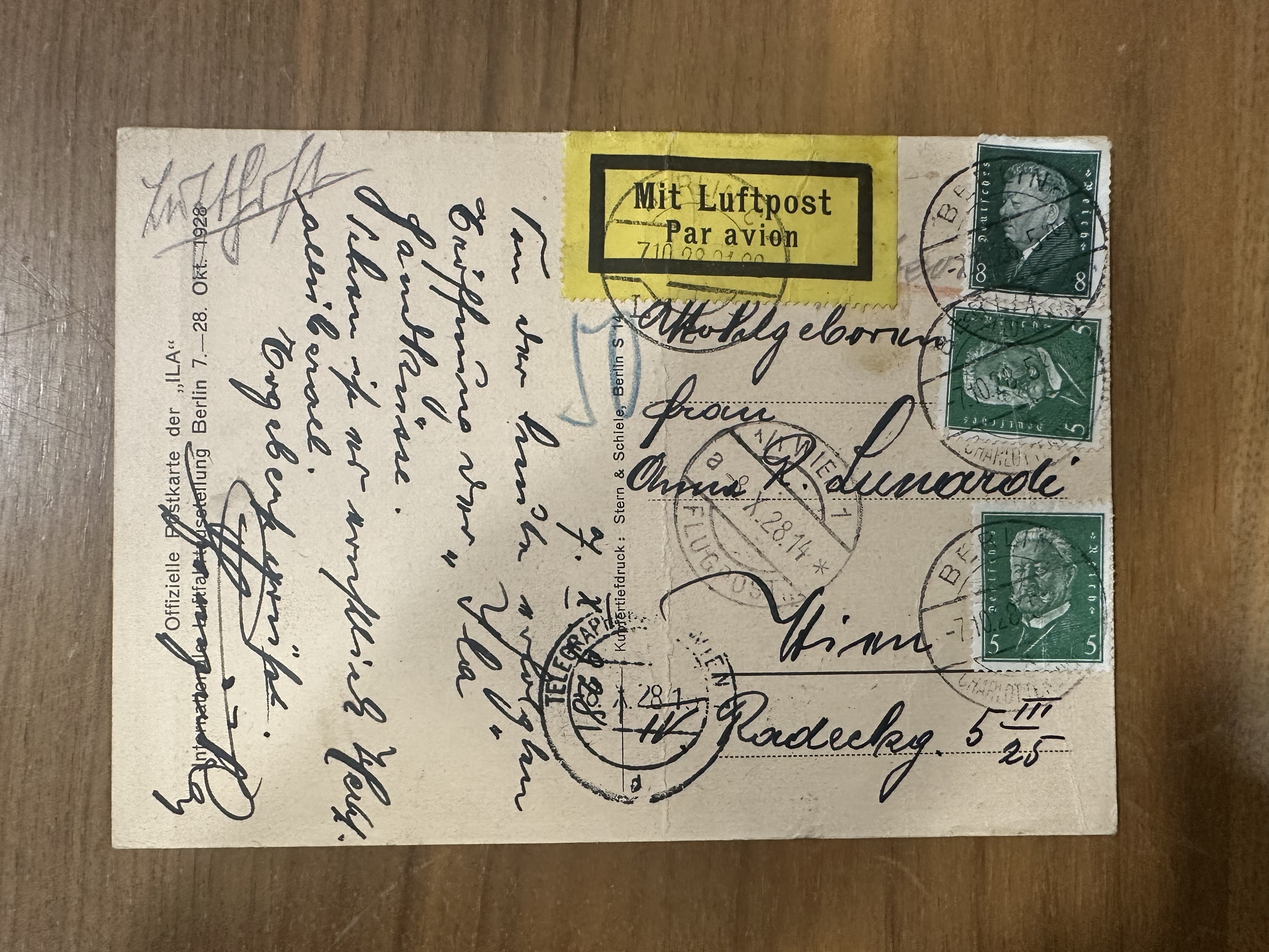 AK offizielle Postkarte der "ILA" - per Luftpost 1928