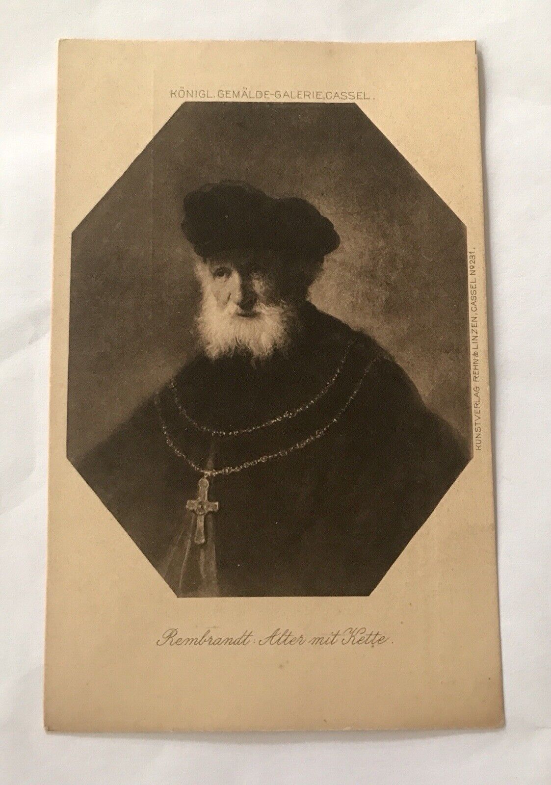 AK, Rembrandt, Alter mit Kette, Mann (20058 BW). Zustand: "Gebraucht". Versand mit Standardversand (unversichert).