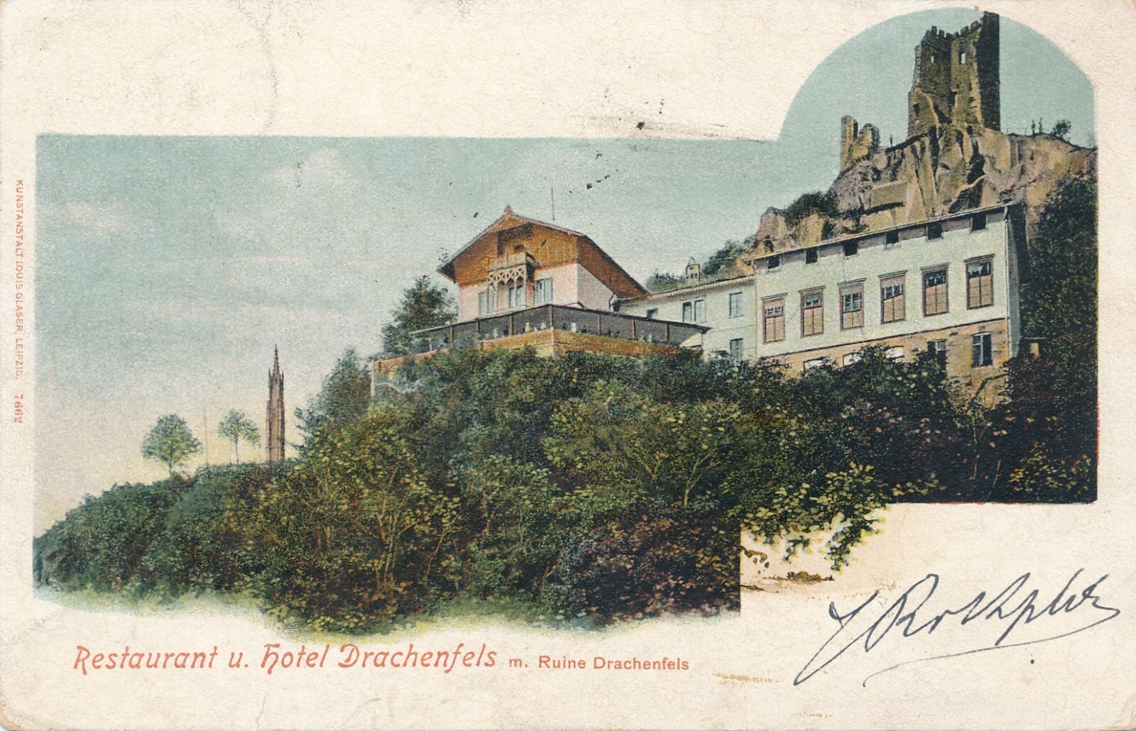 AK, Restaurant und Hotel Drachenfels mit Ruine Drachenfels (S1010)