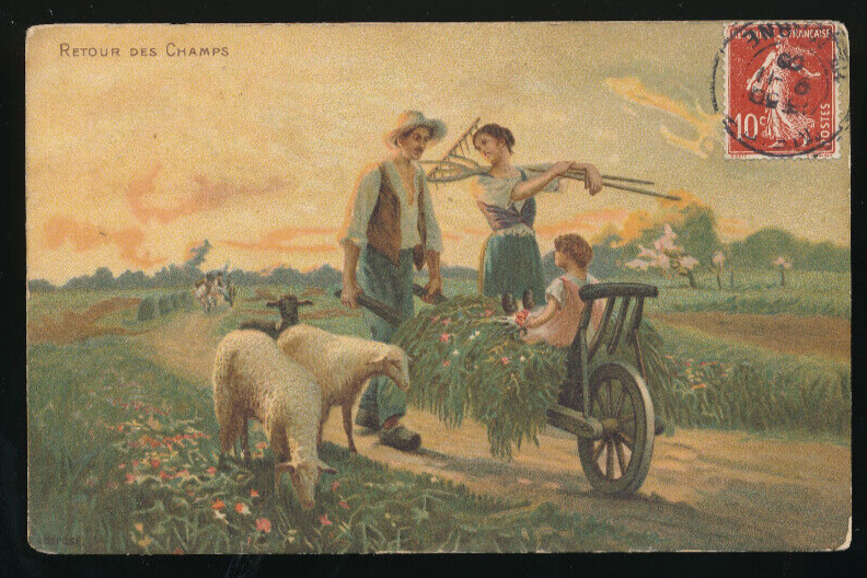 AK Retour des Champs Bauernfamilie mit Schafen (3288)