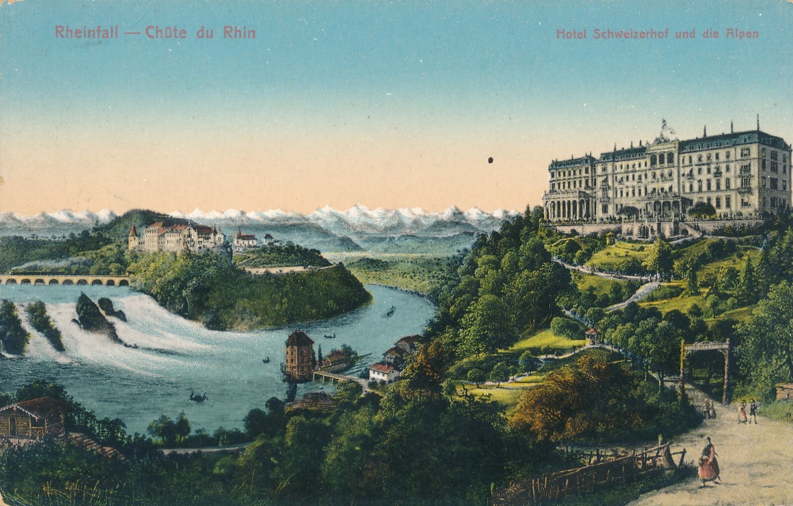 AK, Rheinfall - Chute du Rhin, Hotel Schweizerhof und die Alpen (S985)