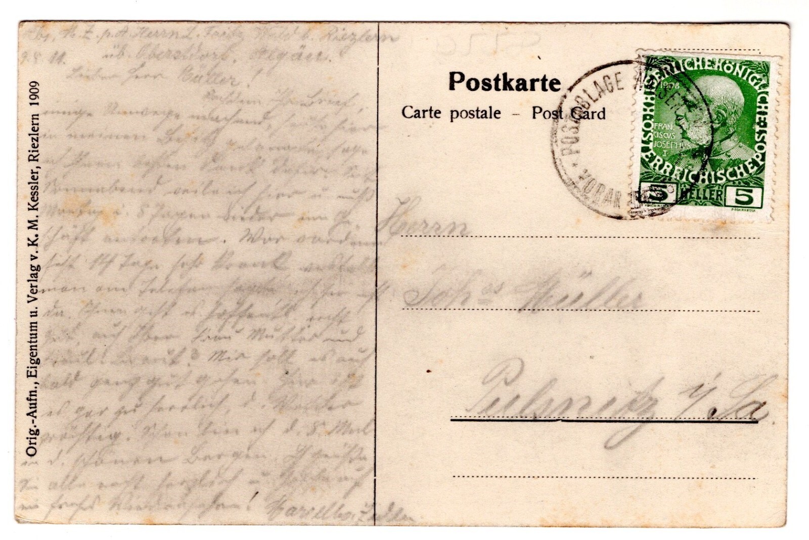 2 Kreuzer - Ganzsachen - Karte 1891 aus Sternberg (10673)