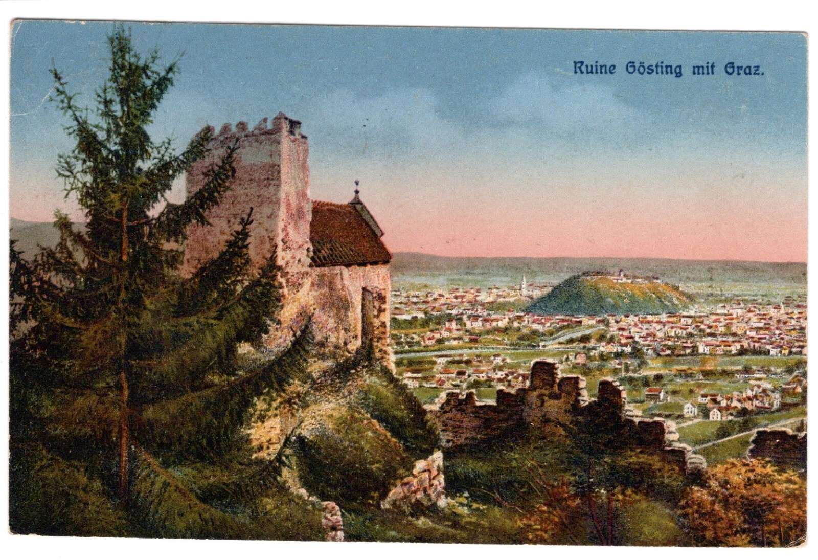 AK, Ruine Göstling mit Graz, Steiermark, Ansichtskarte (S4763)