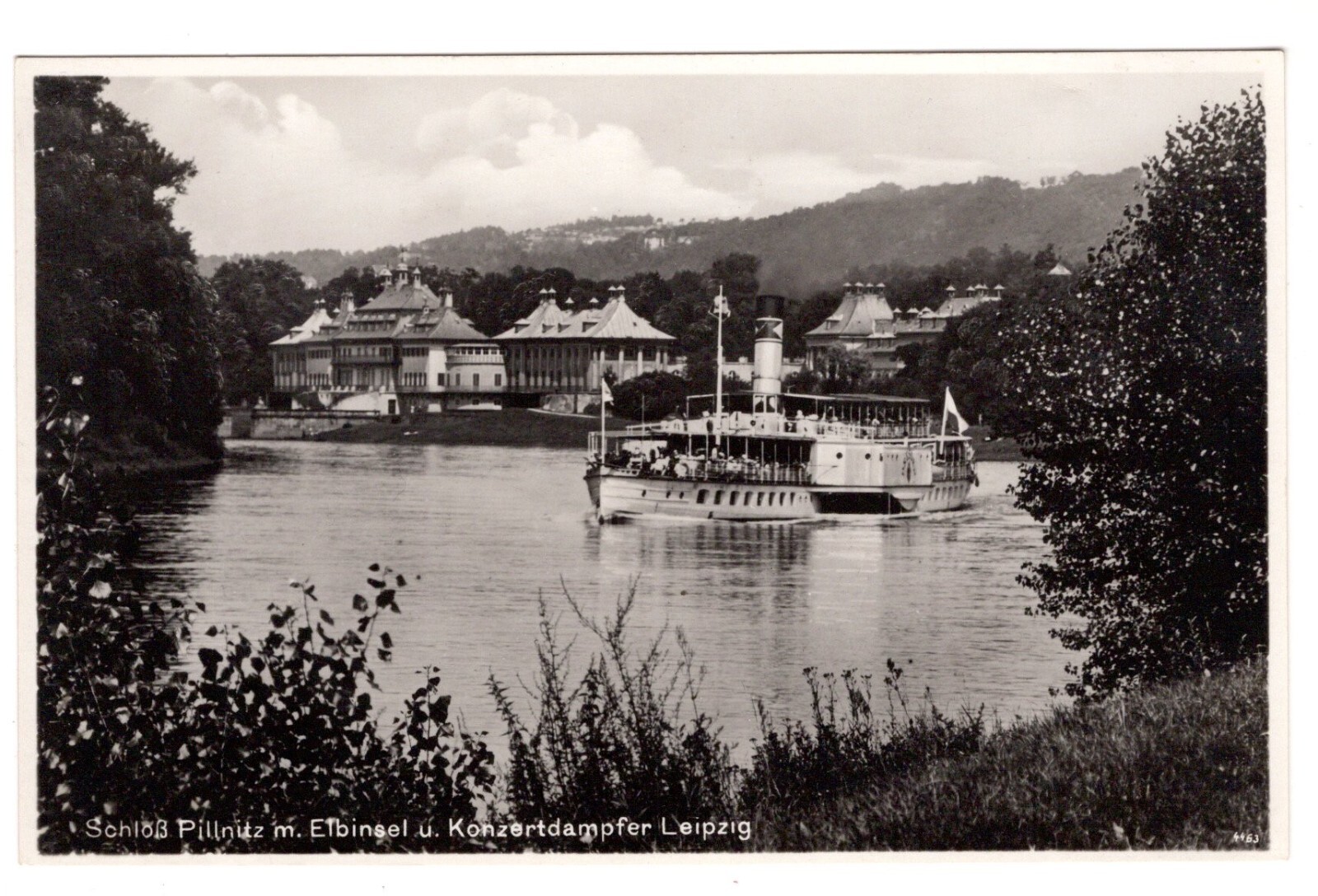 AK, Schloss Pillnitz m. Elbinsel u. Konzertdampfer Leipzig Ansichtskarte (S6335)