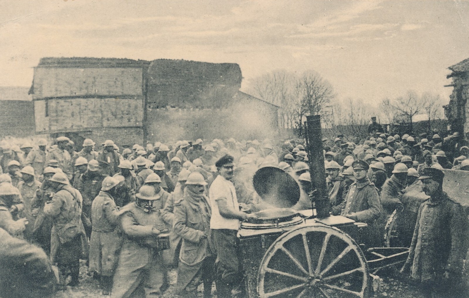 AK Soldaten beim Essens Ausschank Gulaschkanone mit Feldpoststempel (6525)