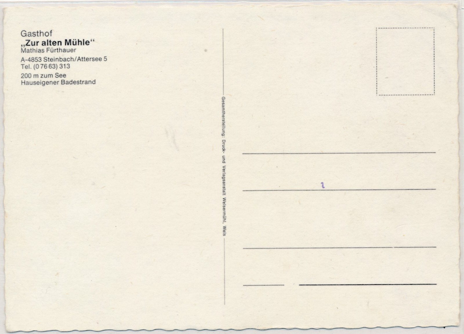 AK, Steinbach am Attersee, Gasthof zur alten Mühle, Oberösterreich (S2818)
