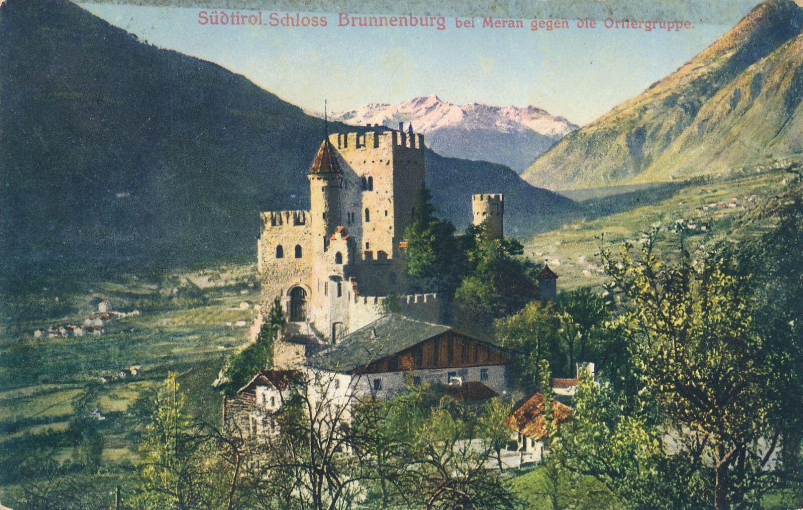 AK, Südtirol, Schloss Brunnenburg bei Meran gegen die Ortlergruppe (S752)