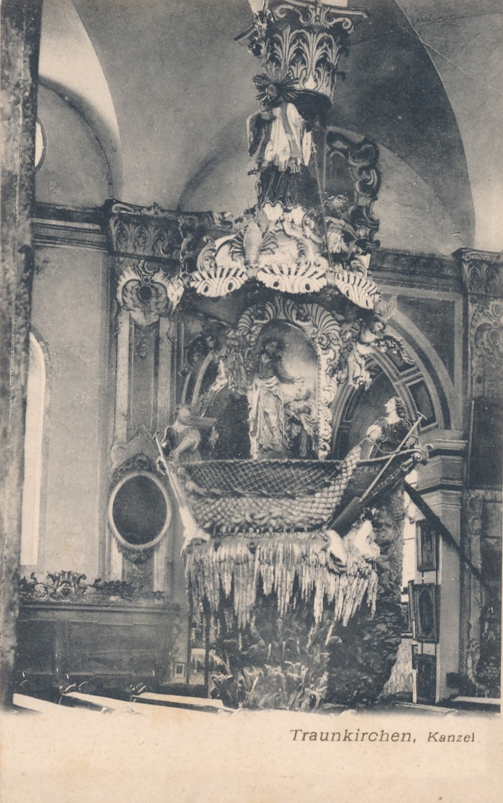 AK Traunkirchen mit Kircheninneres Kanzel Oberösterreich Ansichtskarte (10573)