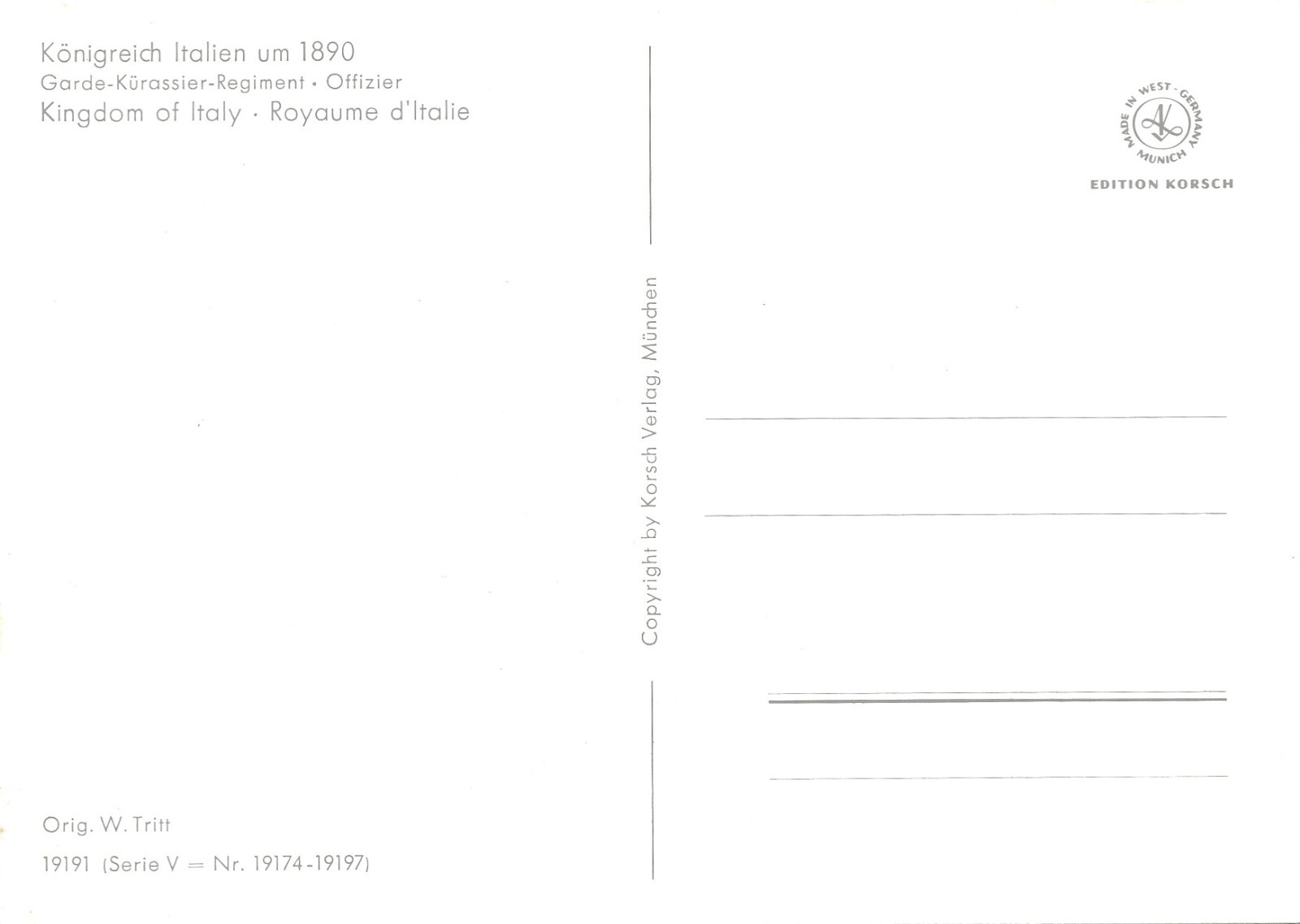 AK Uniform Kaiserr. Italien 1890 Garde Kürassier Offizier Ansichtskarte (8727)
