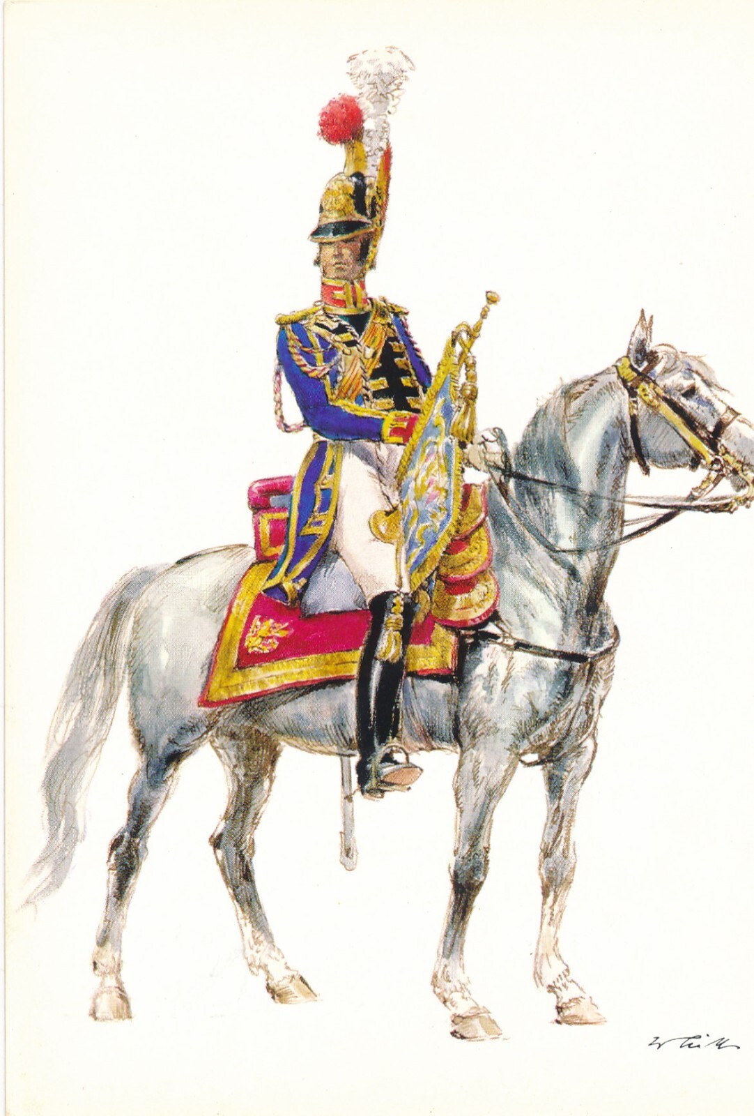 AK Uniform Königreich Frankreich 1814 Gendarmes Trompeter Ansichtskarte (8706)