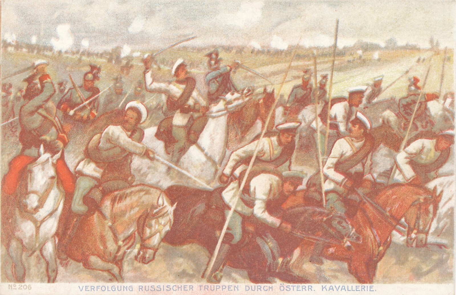 AK Verfolgung Russicher Truppen durch Kavallerie Ansichtskarte (12986)
