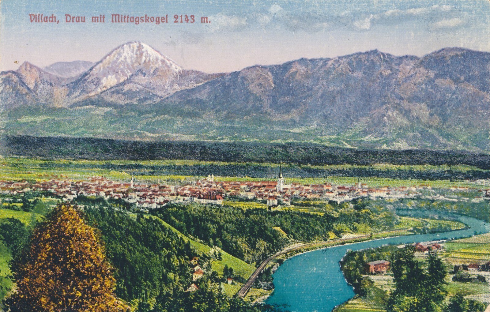 AK, Villach, Drau mit Mittagskogel, Kärnten, Ansichtskarte (S4267)