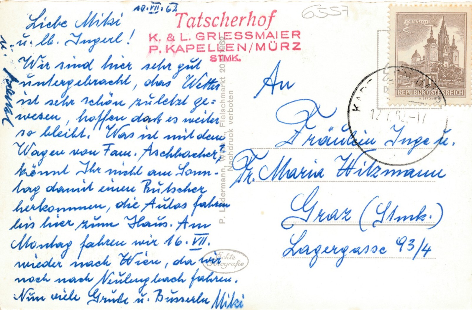AK vom Alpengasthof Tatscherhof Steiermark (7011)