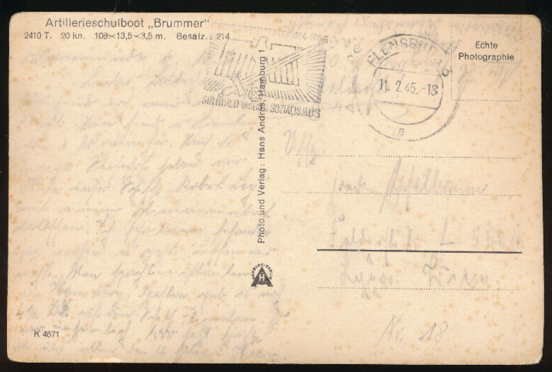 AK vom Artillerieschulboot Brummer (713)