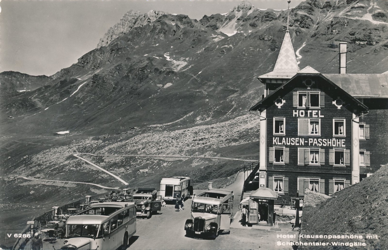 AK vom Hotel Klausenpasshöhe mit Oldtimer Italien Ansichtskarte (13283)
