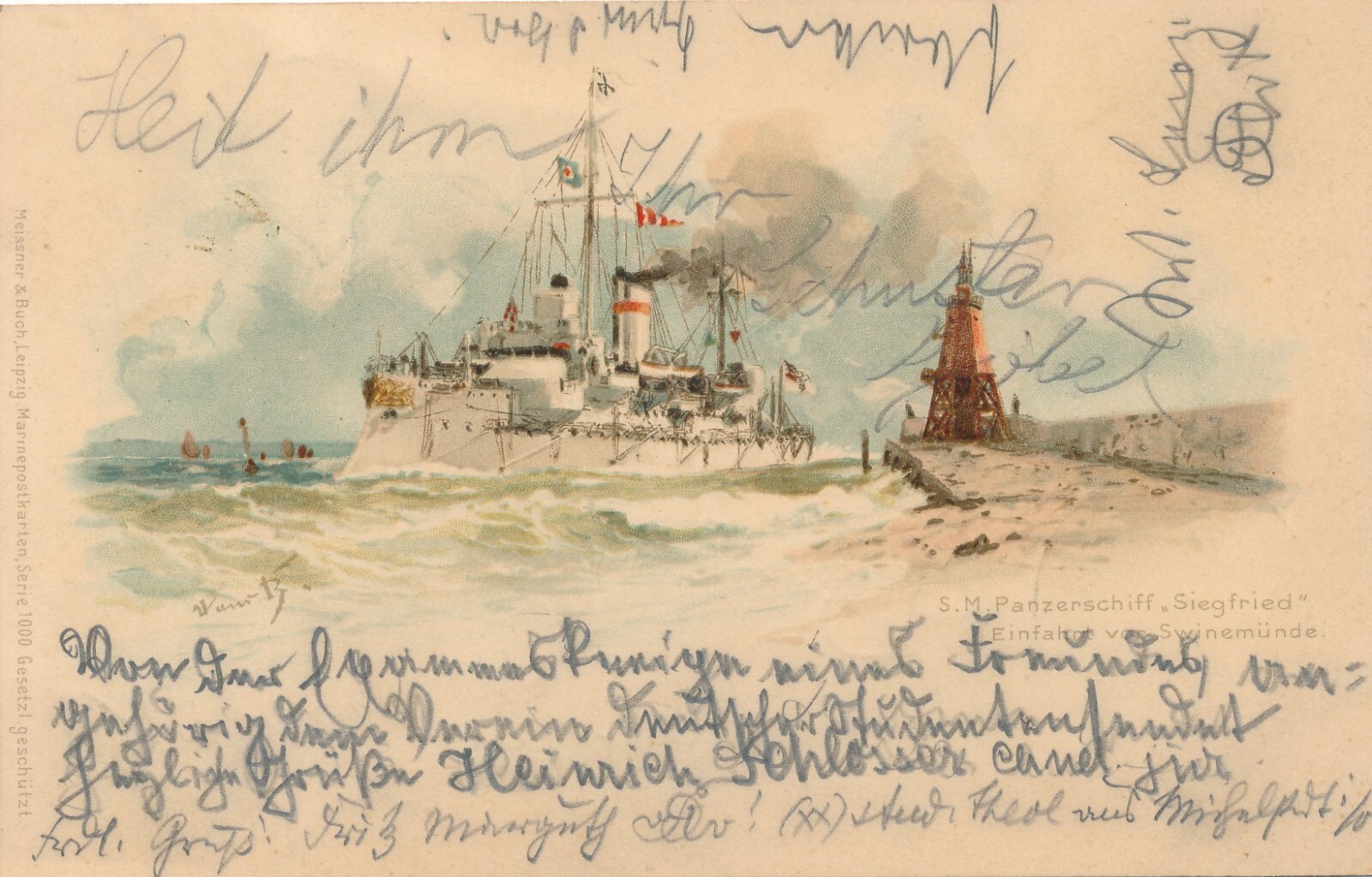 AK vom Kriegsschiff S.M. Panzerschiff Siegfried Ansichtskarte (9258)
