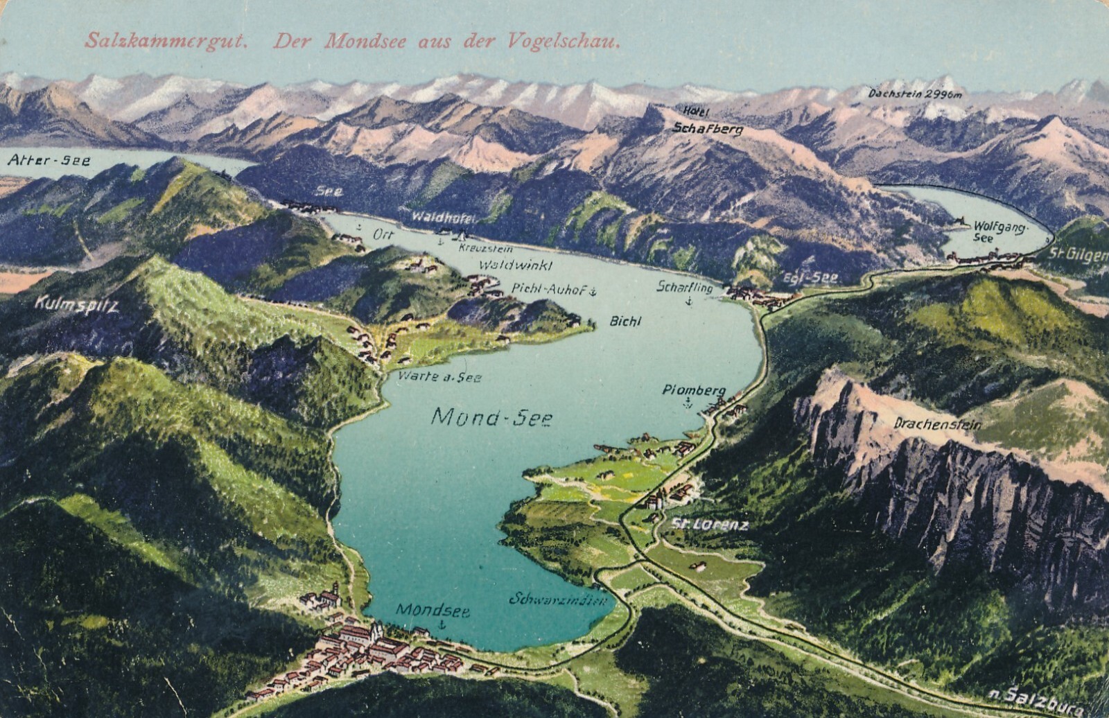AK vom Mondsee aus der Vogelschau Oberösterreich Ansichtskarte (9298)