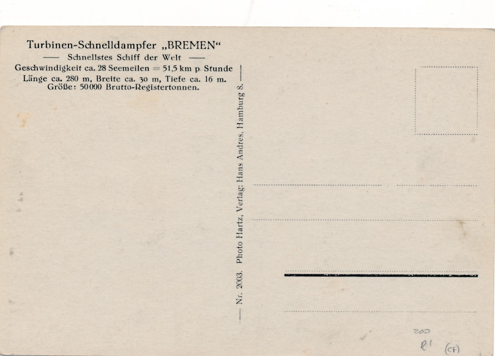 AK vom Turbinen - Schnelldampfer Bremen Ansichtskarte (18164)