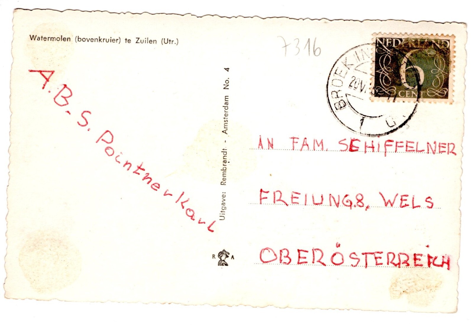 AK, Watermolen te Zilen, Niederlande, Utrecht, Ansichtskarte (S4709)