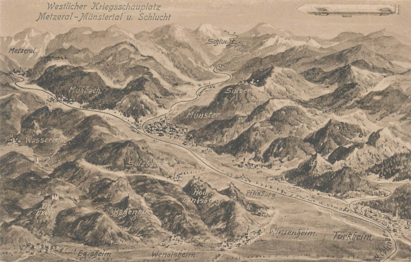 AK Westlicher Kriegsschauplatz mit Zeppelin Militaria Ansichtskarte (14619)