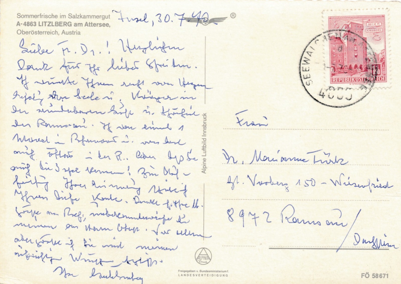 Alpine - Luftbild aus Litzlberg Oberösterreich Ansichtskarte (11239)
