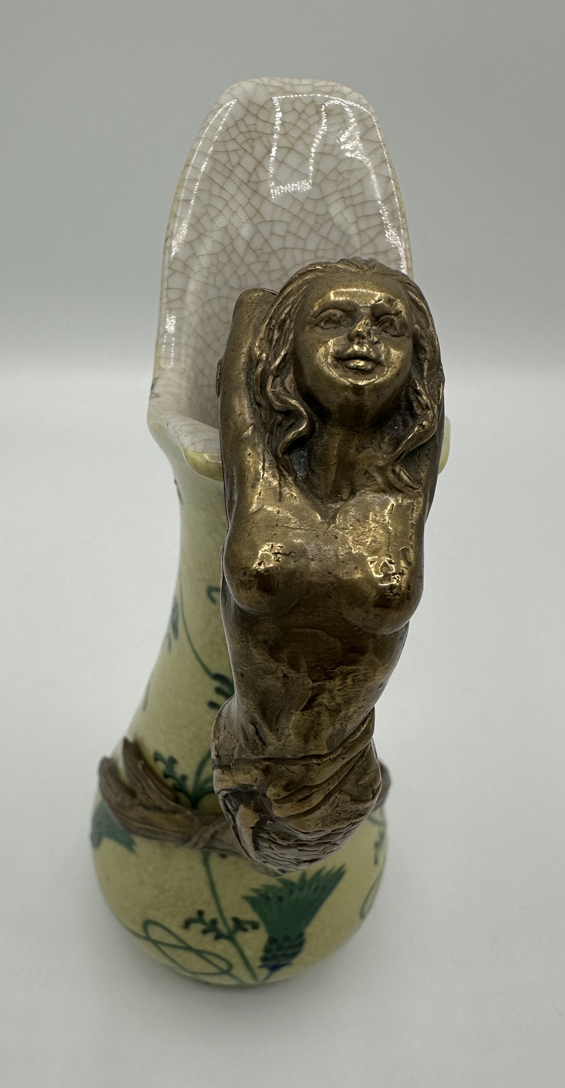 Jugendstil Karaffe bzw. Vase, Meerjungfrau aus Bronze dient als Griff