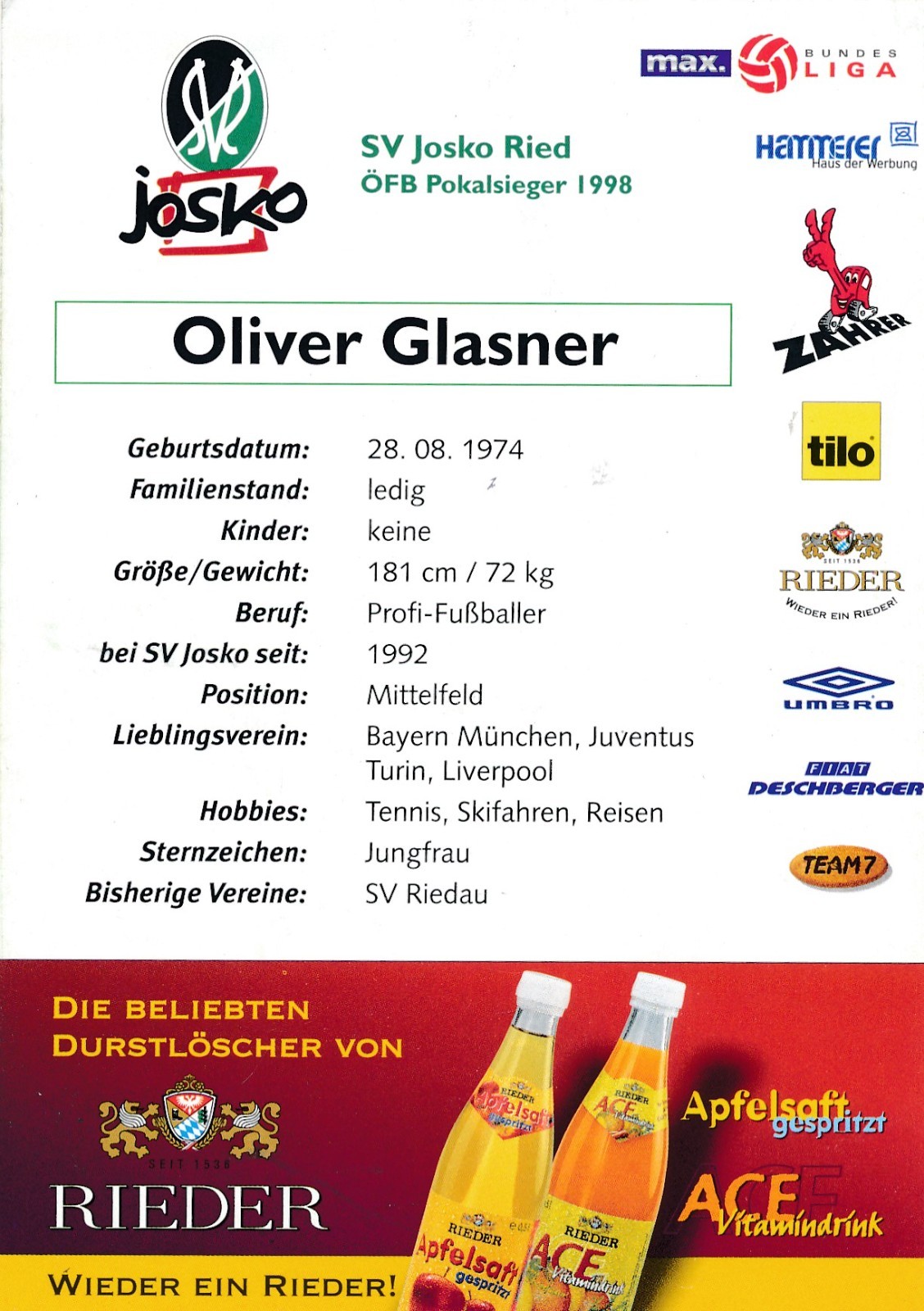 Autogrammkarte von Oliver Glasner Original Unterschrift Ansichtskarte (16199)