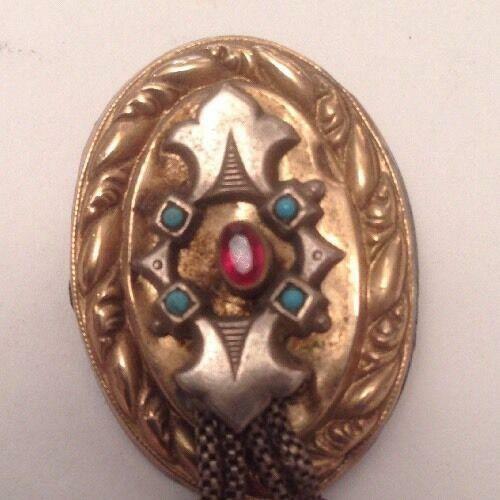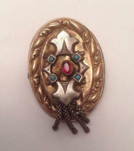 Biedermeier Schaumgold Brosche Türkis roter Glasstein 12815