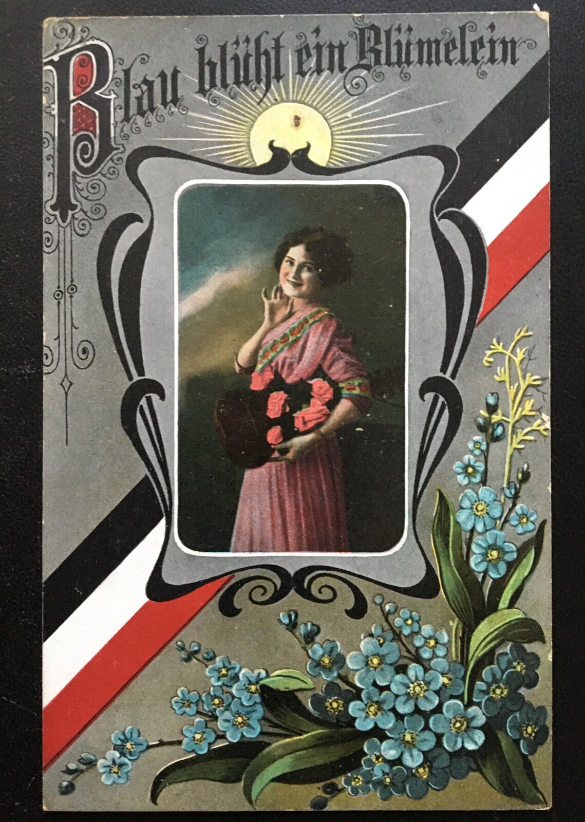 Blau blüht ein Blümelein - Frau mit Strauß - Soldaten Militär Krieg 400655 TH