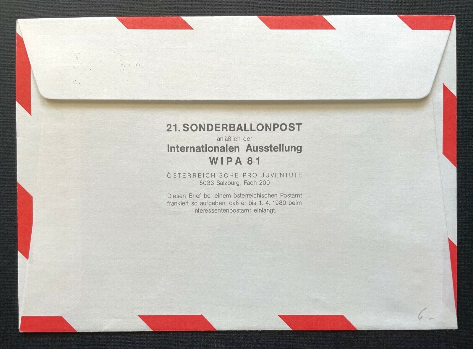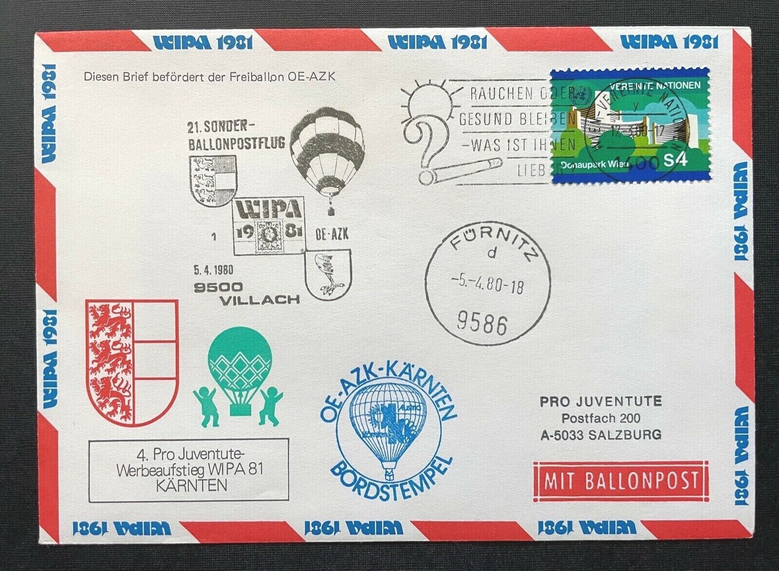 Brief Ballonpost Bordstempel OE-AZK Kärnten Fürnitz 1980 ca16,1x11,5cm 410347