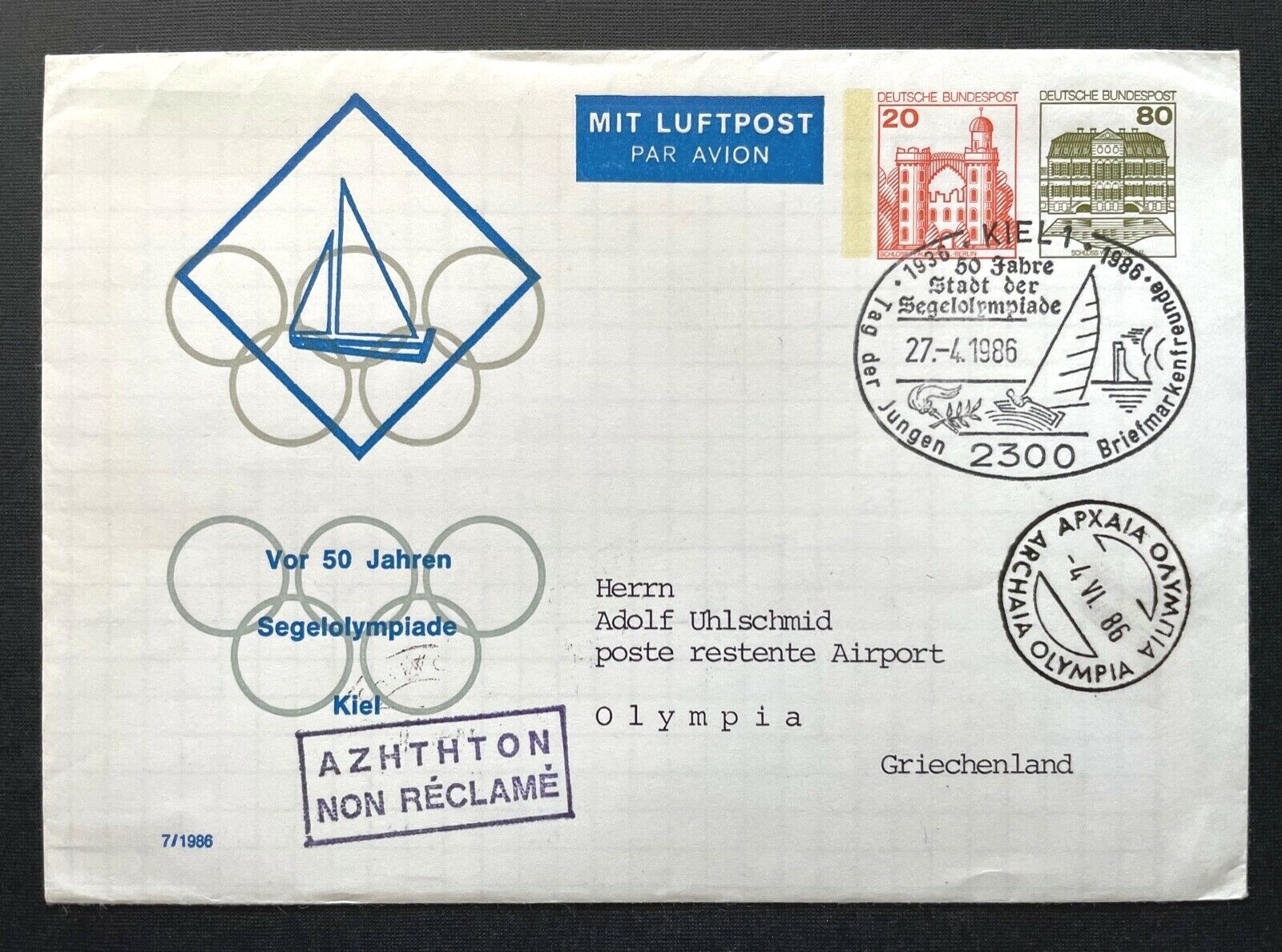 Brief Segelolympiade Kiel BRD Olympia GR Luftpost 1986 ca.16,1x11,3cm 410351