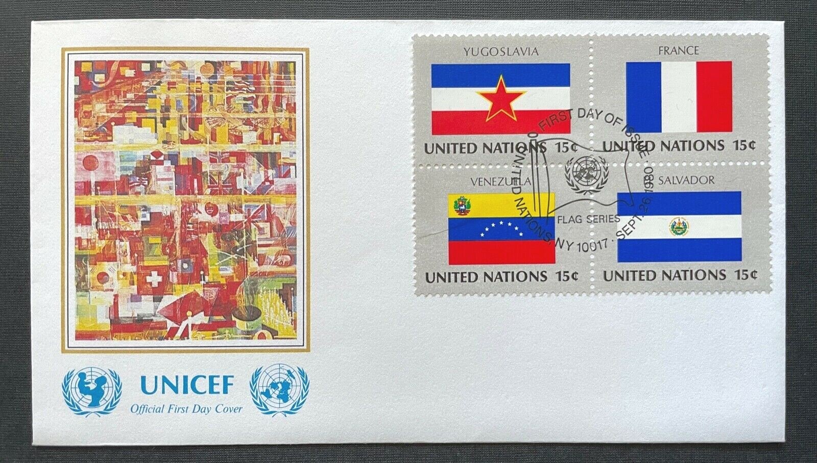 Brief Unicef FDC Flagge Yugoslavia France Venezuela SLV ca.16,5x9,2cm 410309 PR