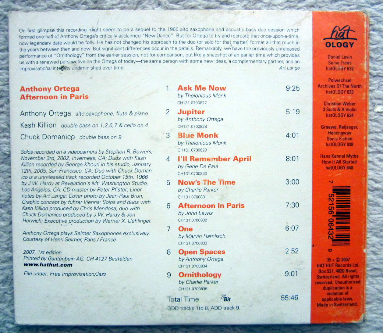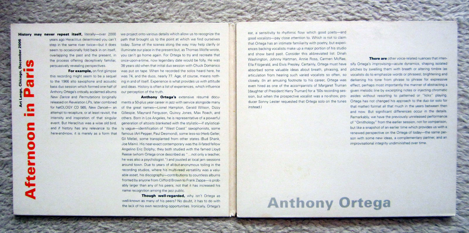CD / ANTHONY ORTEGA / AFTERNOON IN PARIS / RAR /