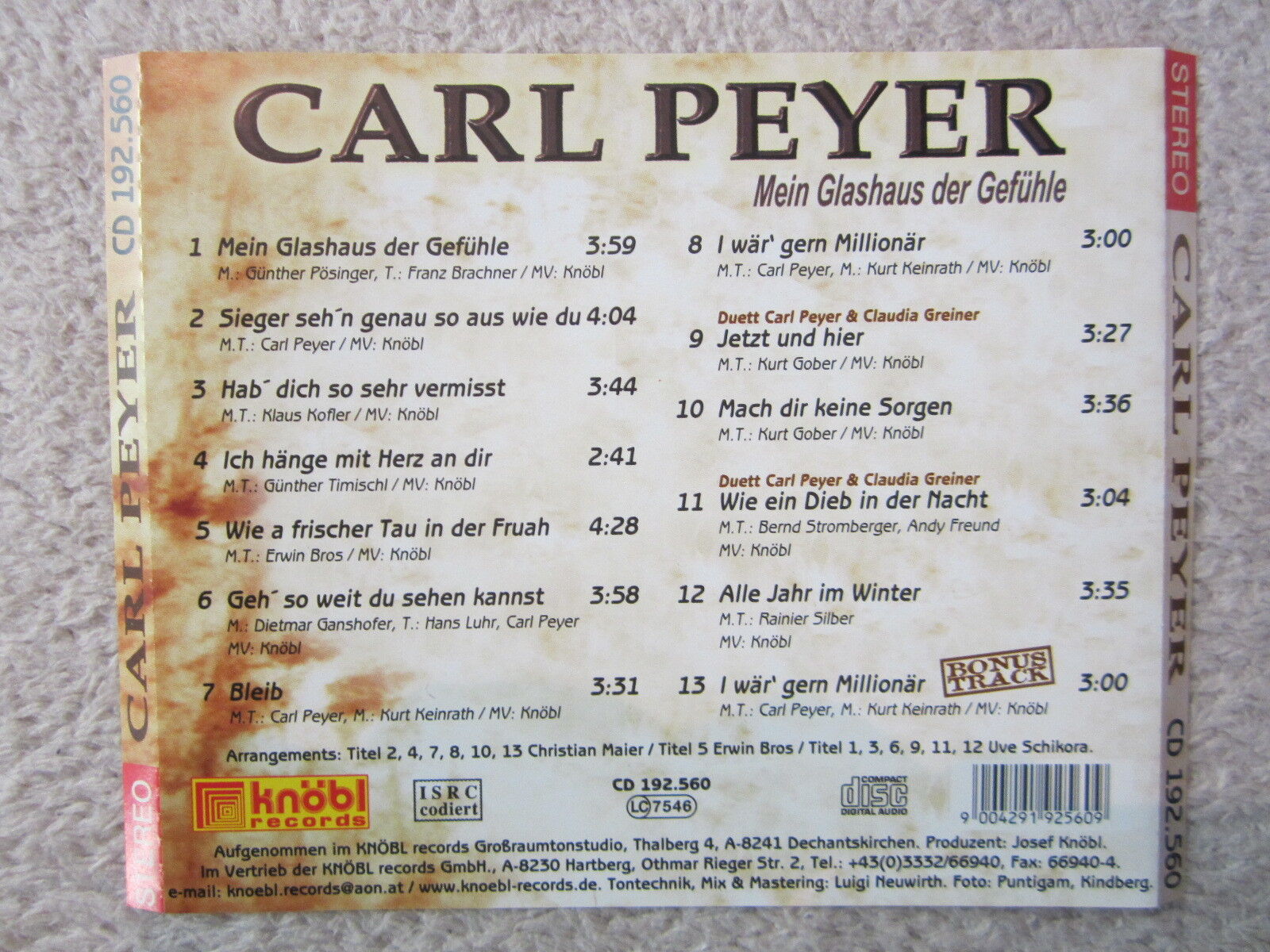 CD / CARL PEYER / MEIN GLASHAUS DER GEFÜHLE / AUSTRIA / RAR /