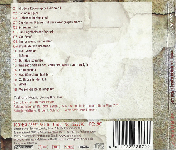 CD / Georg Kreisler & Barbara Peters - Mit Dem Rücken Gegen Die Wand