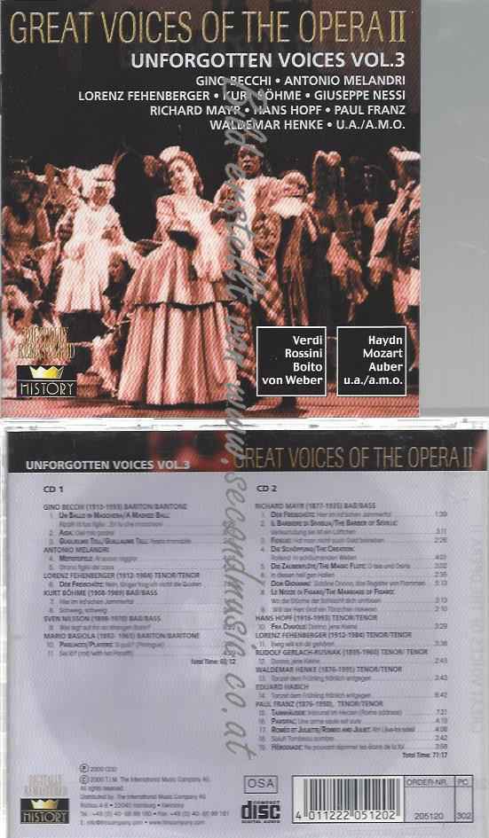 CD--GREAT VOICES OF THE OPERA II: Unforgotten Voices Vol. 3