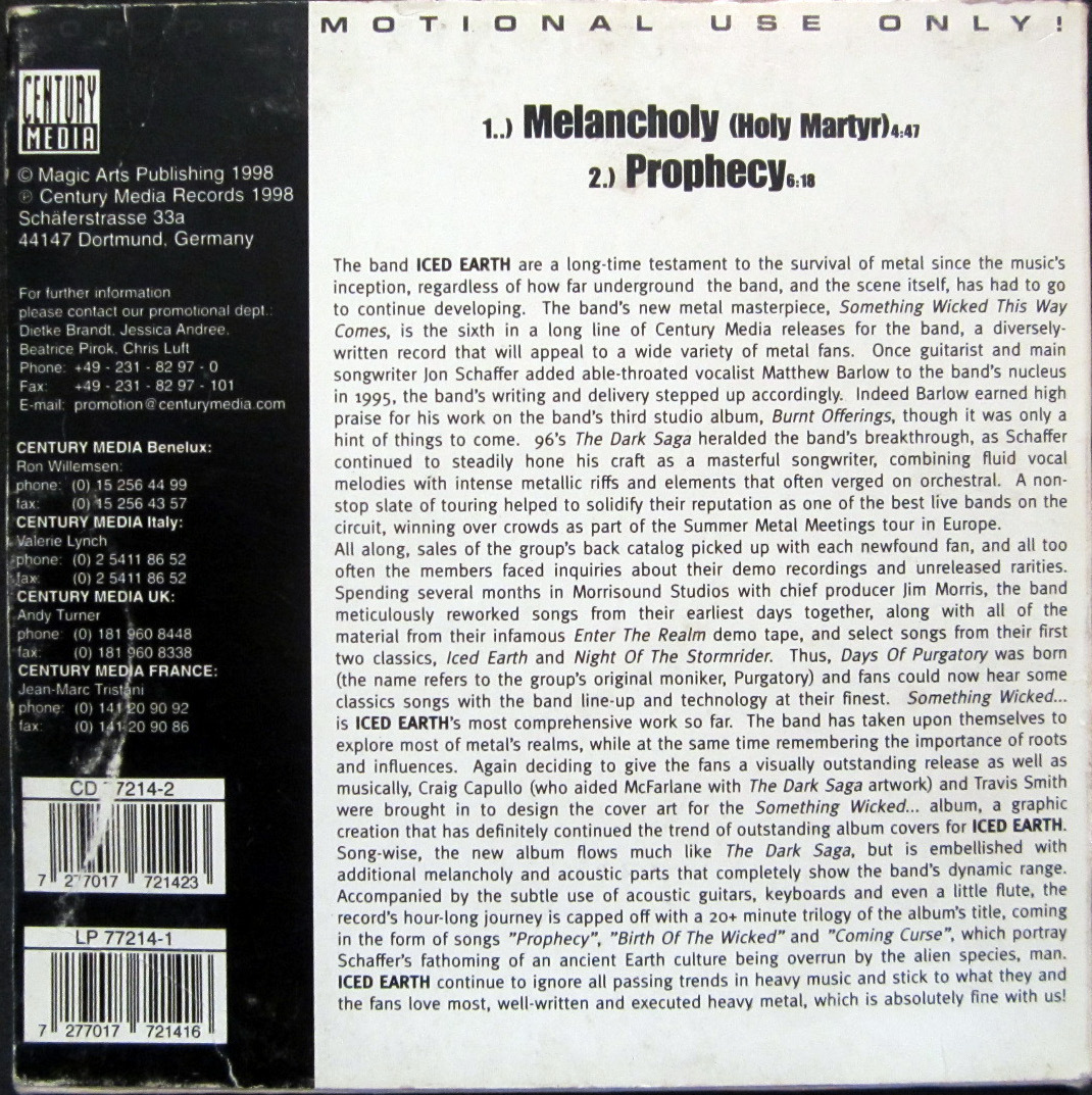 CD / ICED EARTH / PROMO-COPY / JAHR 1998 / RARITÄT /