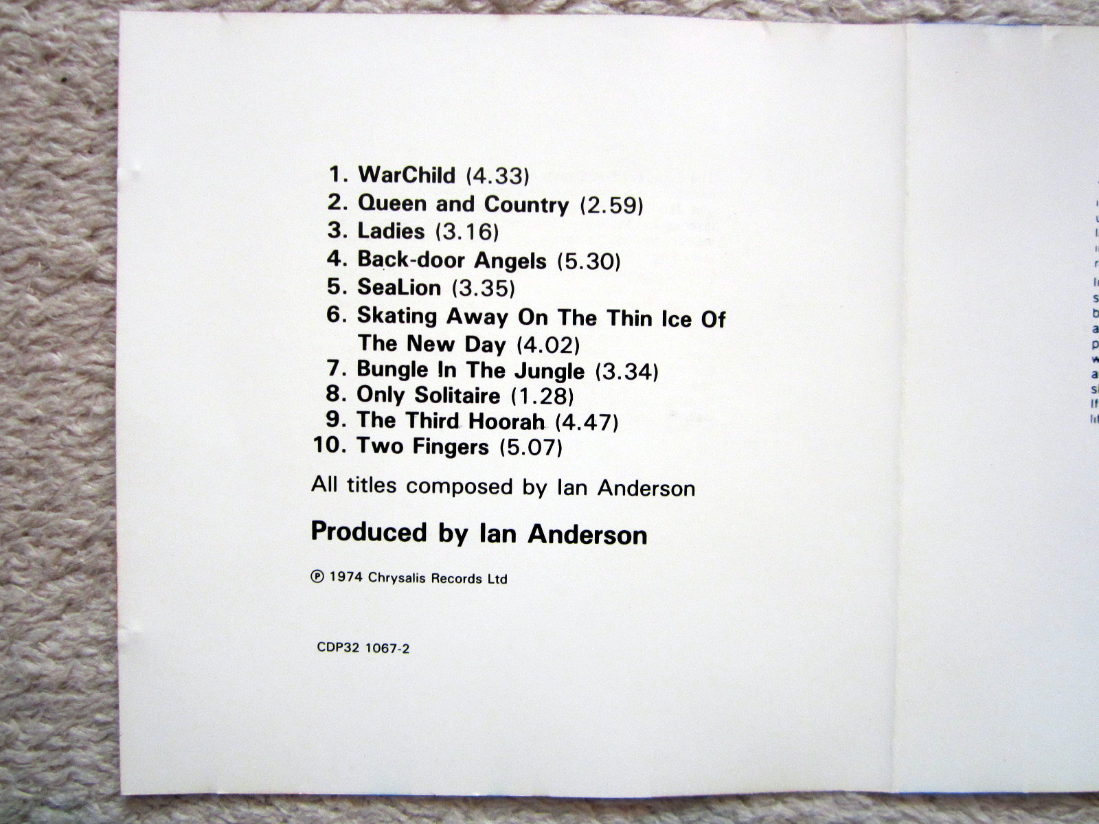 CD / JETHRO TULL / UK PRESS / CHRYSALIS / WAR CHILD / RARITÄT /