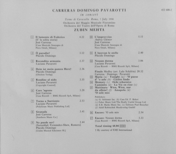 CD / The Three Tenors, Carreras*, Domingo*, Pavarotti*, Mehta* - In Concert