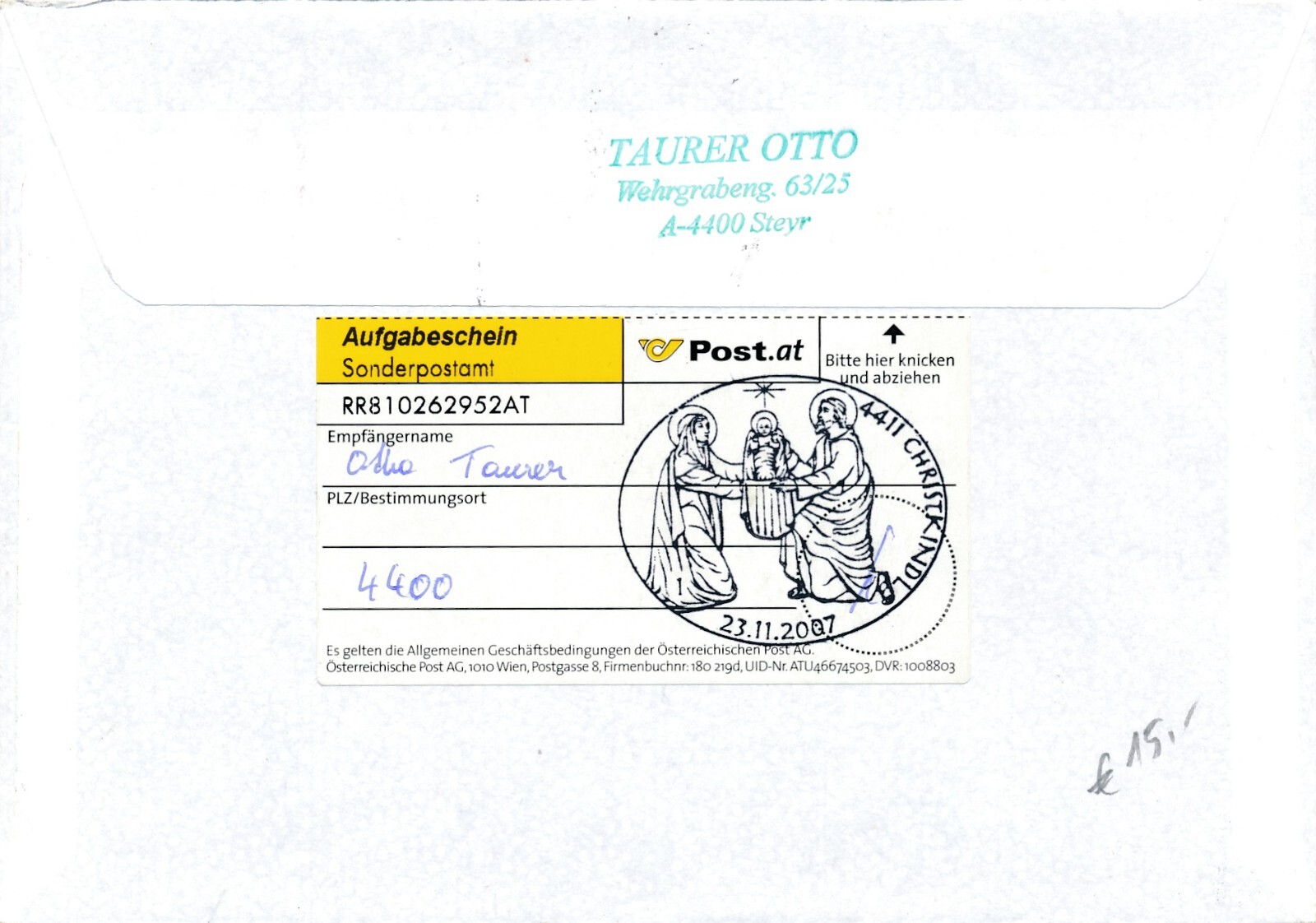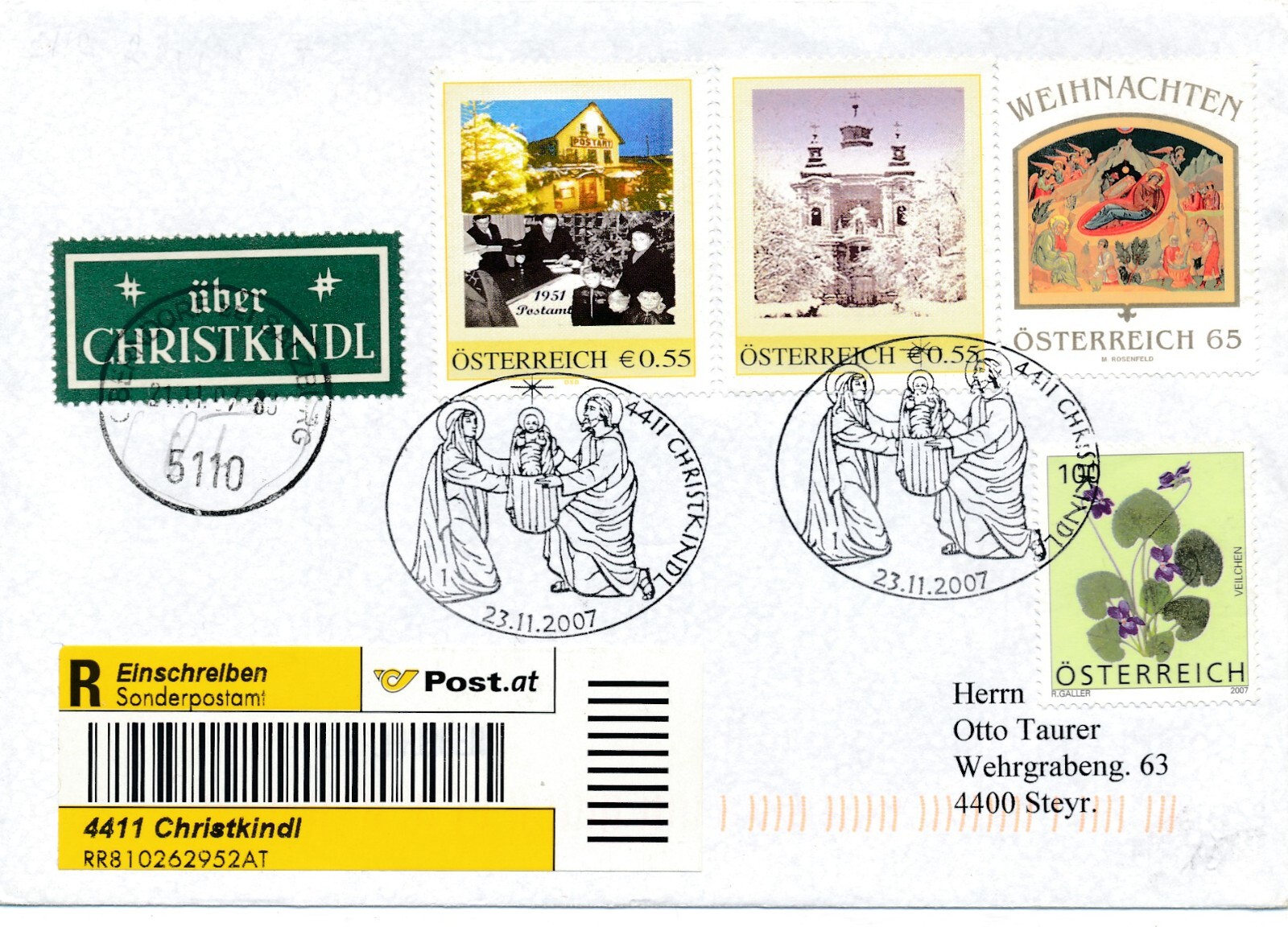 Christkindl - Reco - Brief 23.11.2007 + LZ Oberndorf (11592)