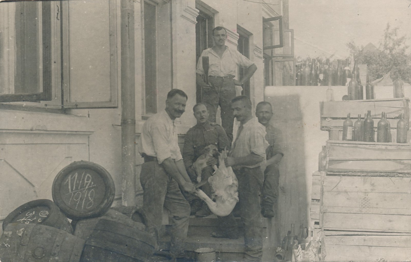 Feldpostkarte KuK Feldpostamt Männer mit Hund und Gans Ansichtskarte (16332)