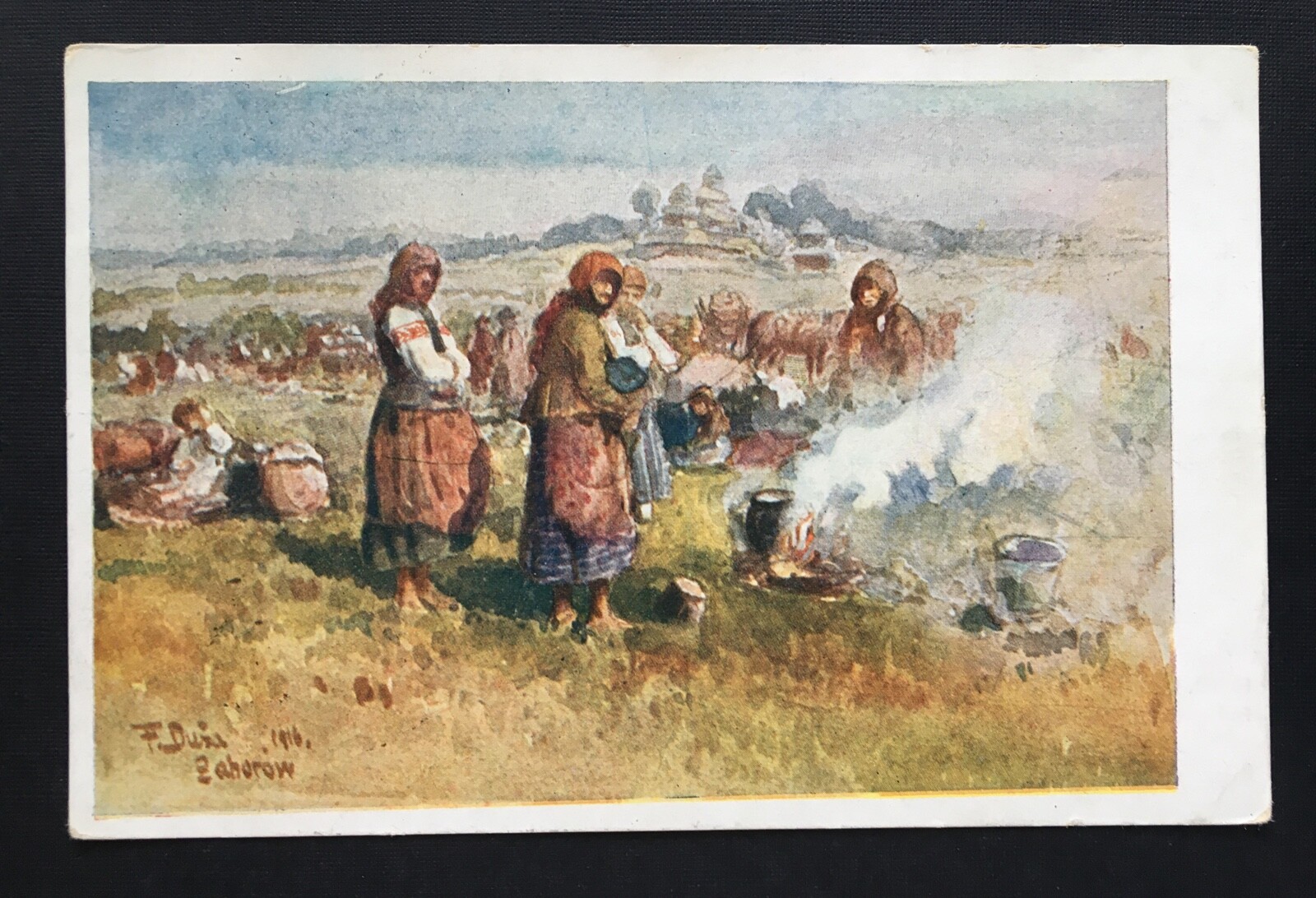 Flüchtlinge Frühstück unter freiem Himmel (F.Dusa) Militär Krieg 400878 TH