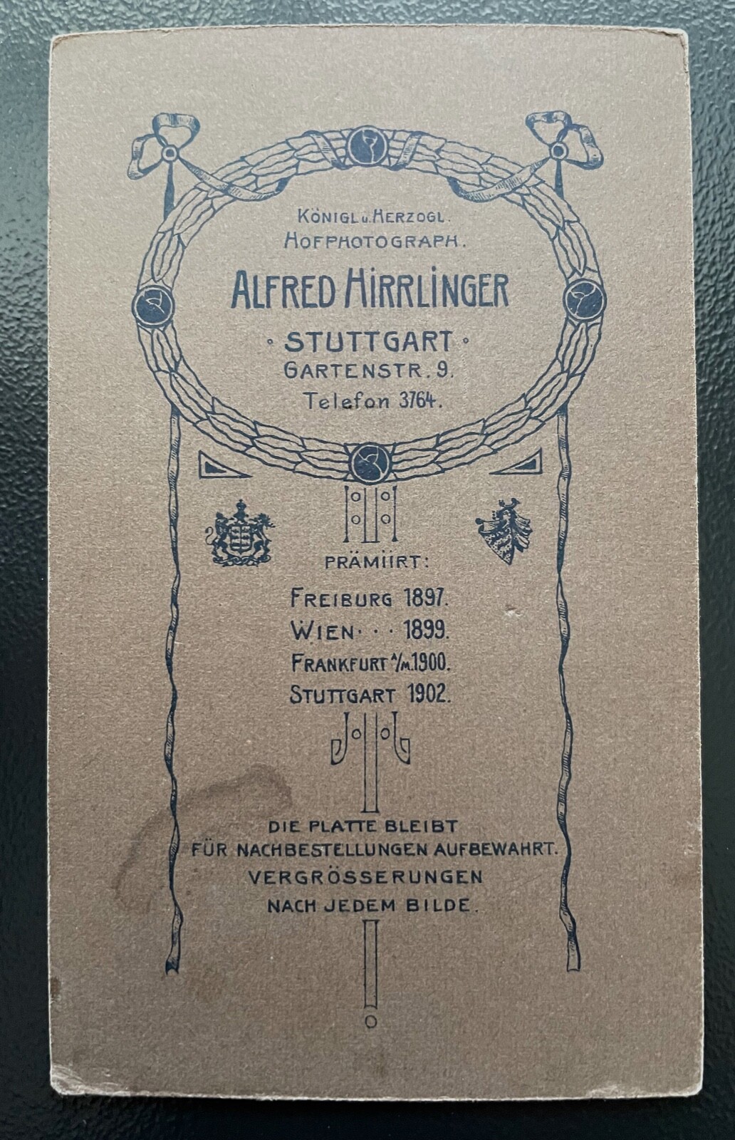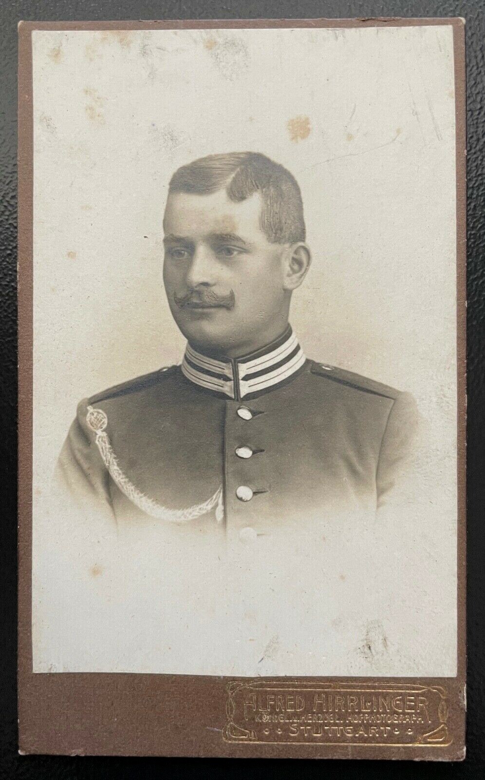 Foto Porträt Soldat Uniform Bart A.Hirrlinger Stuttgart ca.10,4x6,3cm 402432 TH